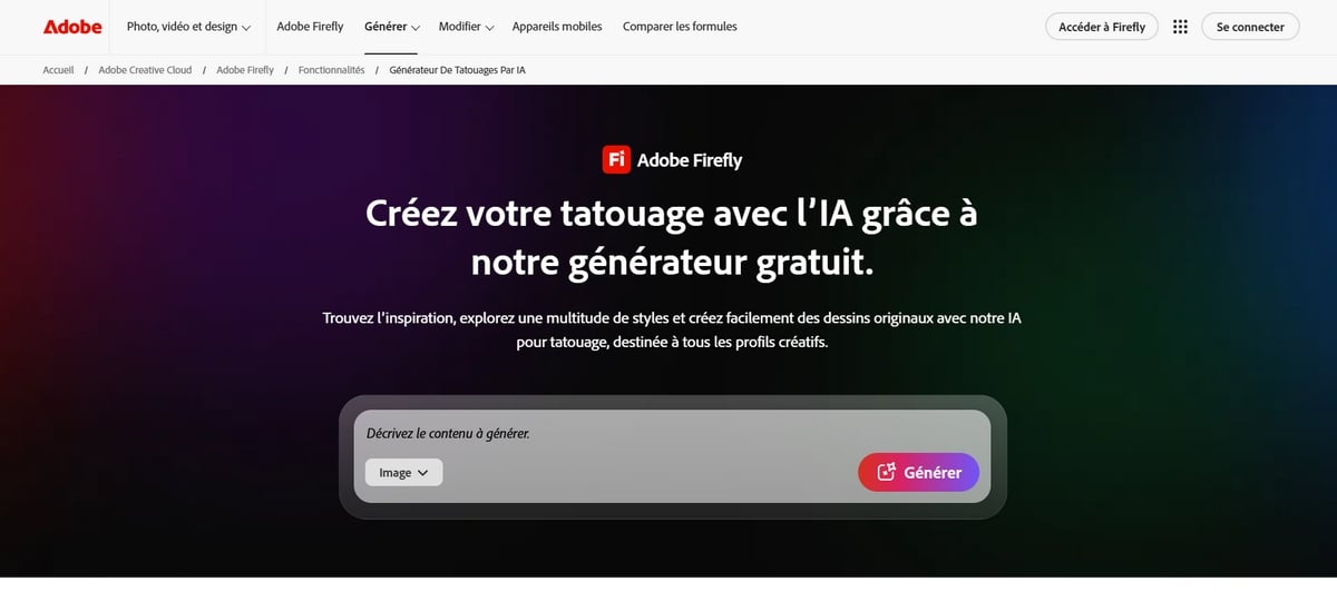 Como paquete de software todo en uno, Adobe Firefly es una herramienta que integra varios modelos de IA para múltiples usos, incluida la generación de tatuajes.