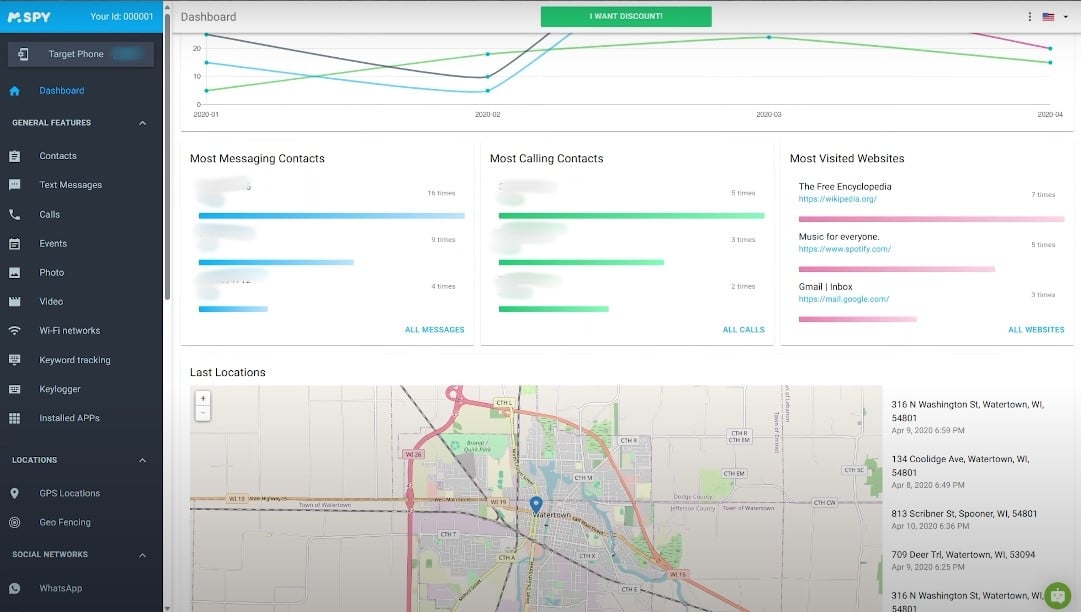 Dopo di che, si può facilmente monitorare lo smartphone dell'adolescente e tutte le sue attività attraverso una dashboard sul vostro dispositivo.
