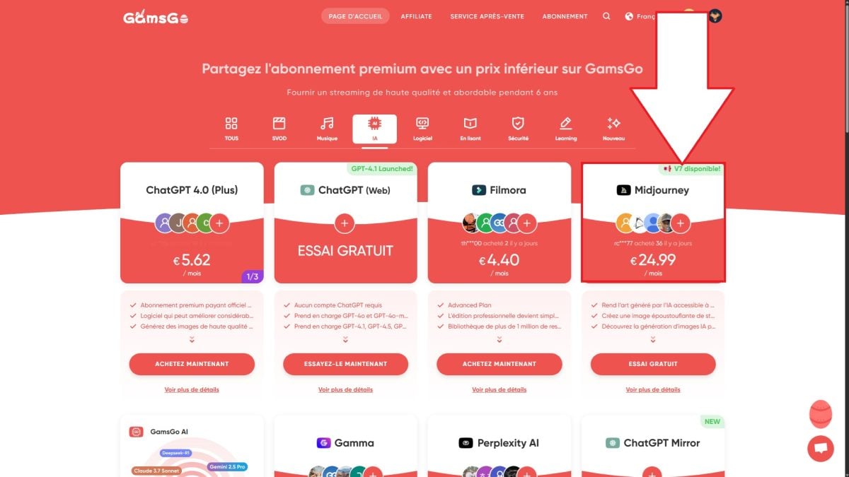 このようなレートを考慮すると GamsGoを経由することは、より明白である。.Midjourneyでお金を節約するだけでなく、さまざまなAIにもアクセスできる。
