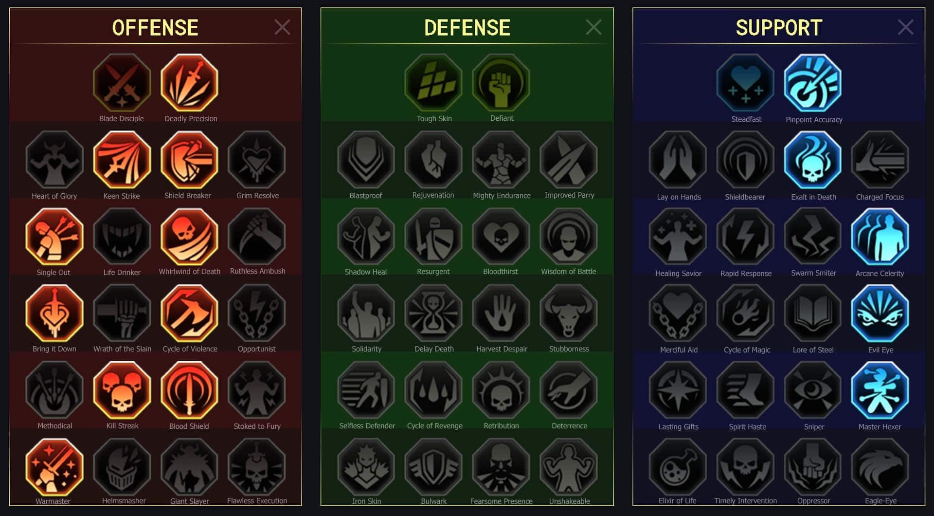 La liste des débuffs du champion :